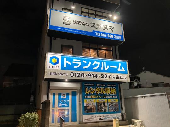 1Fはトランクルーム。2Fは別のテナント様、株式会社スガヌマ様のオフィス。