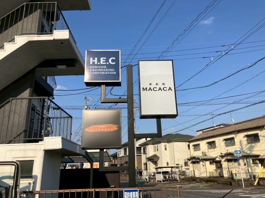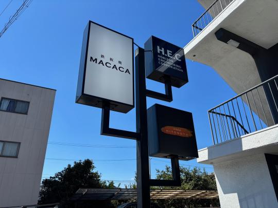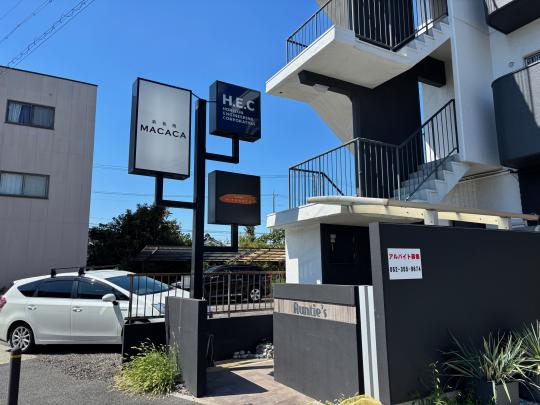中川区のマンション、Aunti’s様です。マンション1階に並ぶ3店舗の共用サインとして、自立看板を施工しました。