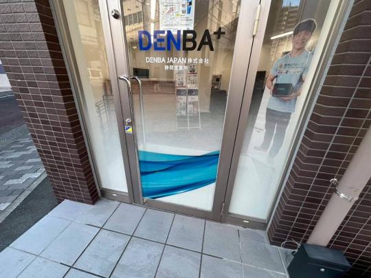 名古屋営業所の開設時に続き、DENBA JAPAN様の新拠点、 静岡営業所もサイン工事をご依頼いただきました。 エントランス上部には、ステンレス製の箱文字(チャンネル文字)を設置。 重厚感と高級感を演出しています。 また、ガラス面には窓用意匠シートとインクジェット出力シートを組み合わせ、 視認性とデザイン性を両立。リピートのご依頼だからこそのブランドイメージをより深く理解した、 一貫性のある仕上がりとなりました。